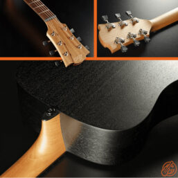 In perfekter Harmonie sind diese drei Holzelemente bei jeder Gitarre aus dem gleichen Material gefertigt, entweder aus braunem oder schwarzem Brankowood, mit einer wunderschönen, natürlich geölten Oberfläche.