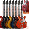 Weitere Merkmale sind der Korpus, Hals und das Kopfplatten-Binding aus Ahorn, eine Rosette und Randeinlage aus dunklem Holz, Dot-Griffbretteinlagen aus Abalone, vergoldete Gussmechaniken und die natural Hochglanzlackierung.