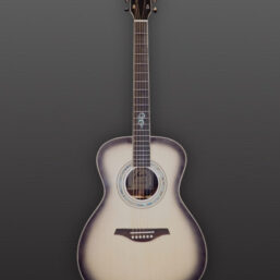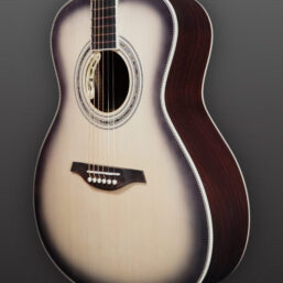 O200E Gray Burst: das neue Modell für 2024, mit massiver Fichtendecke und Palisander Boden, einer Kombination aus Hochglanz- und Mattlackierung, ausgestattet mit dem Double B1G Tonabnehmer.