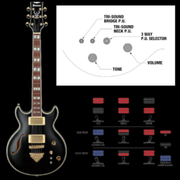 | Beschreibung | 3 teiliger Ahorn Hals Jatoba Griffbrett Medium Bünde Decke aus geflammtem Ahorn Ahorn / Okoume Korpus Super 58 Pickups Gibraltar Performer Bridge Quik Change Classic Tailpiece 2 Tri-sound switches Hollow Body Konstruktion (AR) |