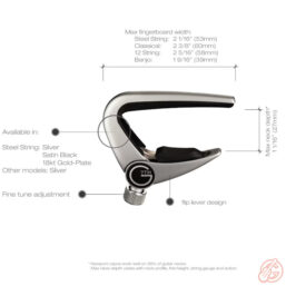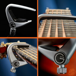 Der Newport Capo besticht durch das typische G7th Design mit der mattsilbernen Optik. Mit seinen dünnen Gummipads vermeidet er Stimmprobleme und Sustainverlust. Mit einer Stellschraube lässt sich der Druck, den er auf Hals und Saiten ausübt, feinst einstellen.