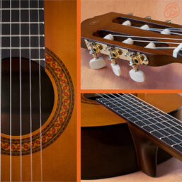 Die C40 zeigt eindrucksvoll, dass ein kleines Budget nicht unbedingt gleichbedeutend damit sein muss, sich mit einer Gitarre zweiter Wahl zufrieden geben zu müssen. Boden und Zargenelemente aus mahagoniähnlichem Meranti und Griffbrett und Bridge aus echtem Palisander sind Ausstattungsmerkmale, die der C40 nicht nur einen guten Ton verleihen, sondern auch für eine hervorragende Bespielbarkeit und Ansprache sorgen. Allzeit gute Stimmung garantieren die präzise arbeitenden, verchromten Mechaniken.