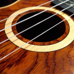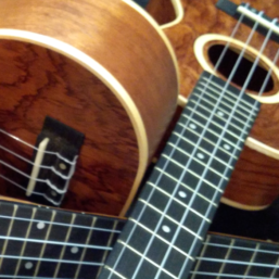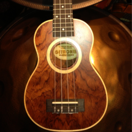 Hier sehen Sie eine wunderschöne Ukulele mit einem Korpus komplett aus hochwertigem Bubinga-Klangholz.