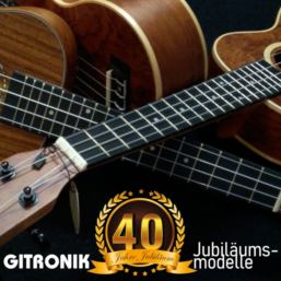 Unsere Jubiläums-Ukulelen sind da! Zu Gitronik’s vierzigstem Jubiläum hatten wir ein ganz besonderes Model in limitierter Stückzahl aufgelegt. Jetzt in 2025´iger Neuauflage wieder lieferbar!