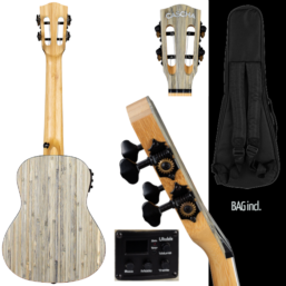 Die Ukulele Bamboo Graphit mit Tonabnehmersystem von CASCHA ist eine herrausragende Ukulele, die komplett aus hochwertigem Bambusholz besteht, welches nach höchsten Maßstäben und bestimmten Kriterien sorgfältig ausgewählt wurde. Das Natur-Holz mit ihrer markanten Graphit-Optik Maserung, dem seidenmatten Finish und den hochwertigen schwarzen Stimmmechaniken verleihen der Ukulele eine schöne, individuelle und elegante Optik.