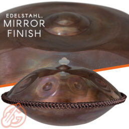 Das hochwertige Material, rostfreier und korrosionsbeständiger Edelstahl, verleiht der Handpan ihren Glanz. Zahlreiche weitere Vorteile gehen mit dem vielseitigen Material einher. Wetter und Zeit können das elegante und futuristische Design der Handpan nicht beeinträchtigen. Edelstahl ist gegen Wasser und Luftfeuchtigkeit sowie schwache Säuren beständig. Die Handpan kann daher überall hin mitgenommen werden. Auch in der Natur kann sie ohne Folgeschäden bespielt werden. Die Edelstahloberfläche ermöglicht es dem Musiker das Instrument jahrelang zu verwenden, ohne Abnutzungsspuren zu verursachen.