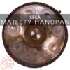 Unsere Moon II Handpan ist aus Edelstahl gefertigt. Dadurch lässt sie sich sehr leicht anspielen und hat ein klares, helles Klangbild. Die Töne entfalten sich schnell und ihr langer Sustain ist perfekt für eine meditative Spielweise. Im Gegensatz zu Handpans aus Stahl ist sie wesentlich leichter und dadurch einfacher in der Handhabung sowie besser zu transportieren.