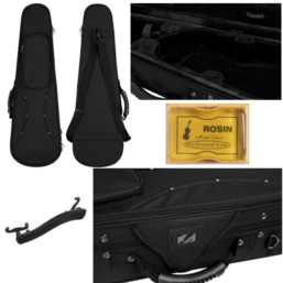Das 4/4 Violinenset ist ideal für Einsteiger, denn es beinhaltet alles, was man zum Violinspielen braucht. Ein leichtes Spiel und ein voller Klang sorgen für Spielspaß von Anfang an. Die hochwertige Verarbeitung und die edle Lackierung mit Glanz-Finish machen die Violine zu einen echtem Blickfang. Ausgewählte Tonhölzer sorgen dabei für einen ausgewogenen Klang. Die Geigendecke besteht aus massivem Fichtenholz, der Korpus aus Ahorn. Griffbrett, Kinnhalter und Wirbel sind aus Ebenholz gefertigt. Die verbauten Mechaniken und der Saitenhalter aus Aluminium mit 4 Feinstimmern ermöglichen ein leichtes Stimmen.