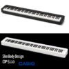 Simple but SleekCasio’s proprietary high-density mounting technology, with miniaturized components and a space-saving internal structure, is key to the slim body of this piano. The bold, monochromatic color scheme and minimalist design aesthetic together deliver a simple yet elegant piano experience.