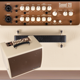 Der Sonnet 120 ist ein 120W Verstärker für Akustikgitarre und Gesang. Beide Kanäle verfügen über einen kombinierten XLR- / Klinken-Eingang zum Anschluss von Instrumenten oder Mikrofonen, +48 Volt Phantomspannung und bieten neben einem Pad Schalter zur Senkung der Eingangsempfindlichkeit um 10 dB einen vollständigen EQ sowie einen Regler zur Unterdrückung unerwünschter Rückkopplungen. Der Phasen Regler kann zur Korrektur von Phasenfehlern verwendet werden. Der Sonnet 120 verfügt zudem über vier Reverb-Typen (Hall, Studio, Chamber, Plate), bei denen der Nachhall über einen Regler gesteuert werden kann. Über einen USB Anschluss kann ein Ausgangssignal zu Aufnahmezwecken an einen Computer geschickt werden. Alternativ kann das Signal über den symmetrischen XLR D.I. Ausgang an externe Geräte ausgegeben werden.