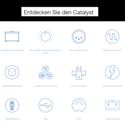 60+100 Watt: Zweikanal 1×12-Gitarren-Combo, 6 Original-Verstärkerdesigns, integrierte Effekte, Power Attenuator, XLR-Ausgang, FX-Loop, Verstärkereingang, USB-Audio-Interface (2 Kanäle), kostenlose Catalyst-Editor-App, optionaler Fußschalter (LFS2