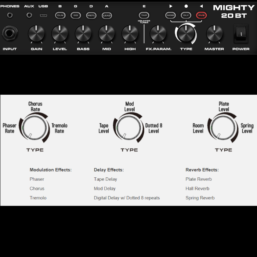 Mighty 20 BT has 4 channels and each channel has 2 sound presets, and each preset offers one of the well-known amplifiers‘ characteristic sound – in short, you will have 8 amps inside. You can get the real taste of different musical sounds and playing styles.